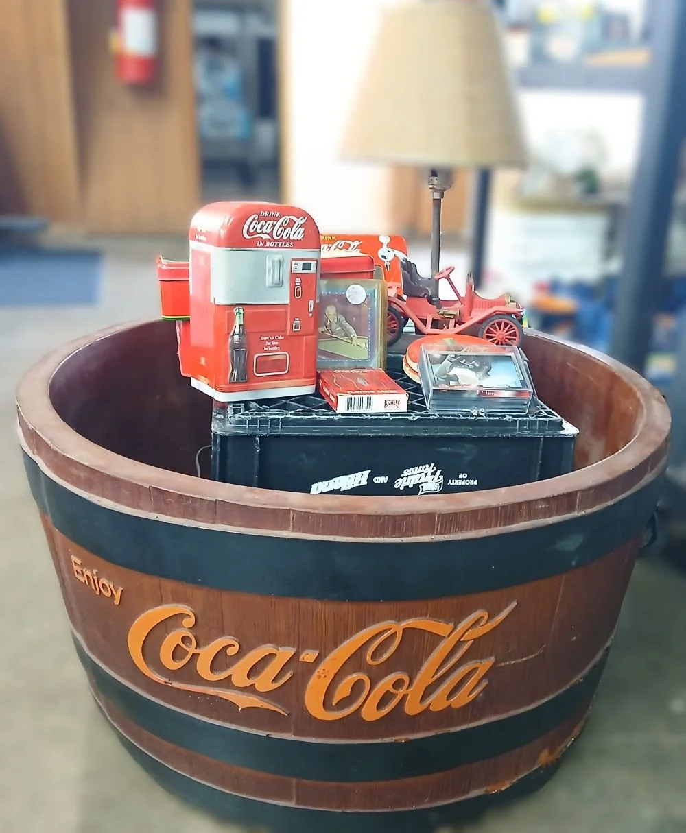 Red Wing Pottery, Mantle Clocks (1700), Grandfather Clock, Slot Machines, NCR Cash Register Like New!, Advertising Memorabilia,